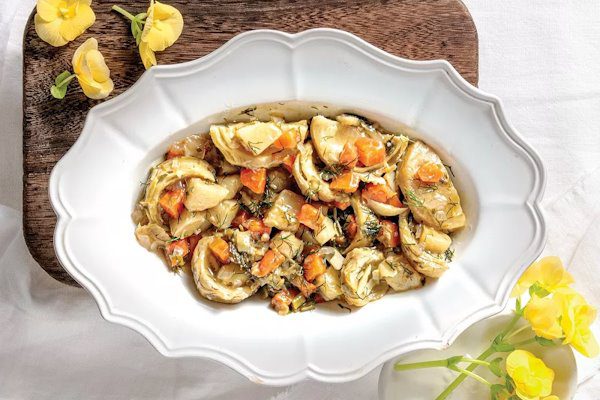 Η αγκινάρα αποτελεί έναν θρεπτικό θησαυρό της μεσογειακής διατροφής, πλούσια σε φυτικές ίνες, βιταμίνη C, K και αντιοξειδωτικά που ενισχύουν το ανοσοποιητικό, ενώ η κυναρίνη που περιέχει προστατεύει το ήπαρ και βελτιώνει την πέψη. Στην ελληνική κουζίνα, αξιοποιείται ωφέλιμα κυρίως την άνοιξη, με πιο κλασική την “αγκινάρα αλά πολίτα” (βραστή με λεμόνι, άνηθο, καρότο και πατάτες), η οποία διατηρεί ανέπαφα τα θρεπτικά της συστατικά. Επιπλέον, μαγειρεύεται εξαιρετικά ως λαδερό με αρακά, σε πεντανόστιμα αυγολεμονάτα φαγητά με αρνί, ωμή σε σαλάτες, ή γεμιστή με ρύζι, προσφέροντας μια λεπτή, γήινη γεύση που ταιριάζει απόλυτα με το ελαιόλαδο. Εδώ, σας παρουσιάζουμε μια συνταγή με αγκινάρες με μάραθο και καρότο.