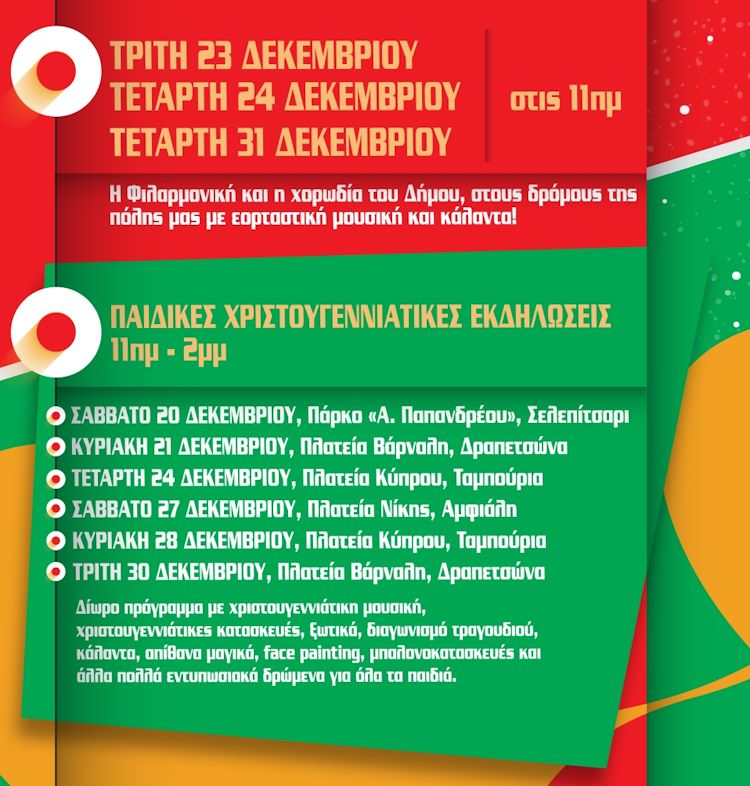 Όλο το πρόγραμμα των Χριστουγεννιάτικων Εκδηλώσεων του Δήμου Κερατσινίου – Δραπετσώνας